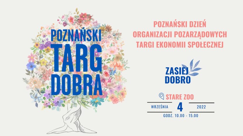 Zapraszamy mieszkanki i mieszkańców Poznania do udziału w tegorocznej edycji Poznańskiego Targu Dobra, które jest świętem Organizacji Społecznych w naszym mieście. 4 września 2022 godz. 10.-15.00 Podczas...