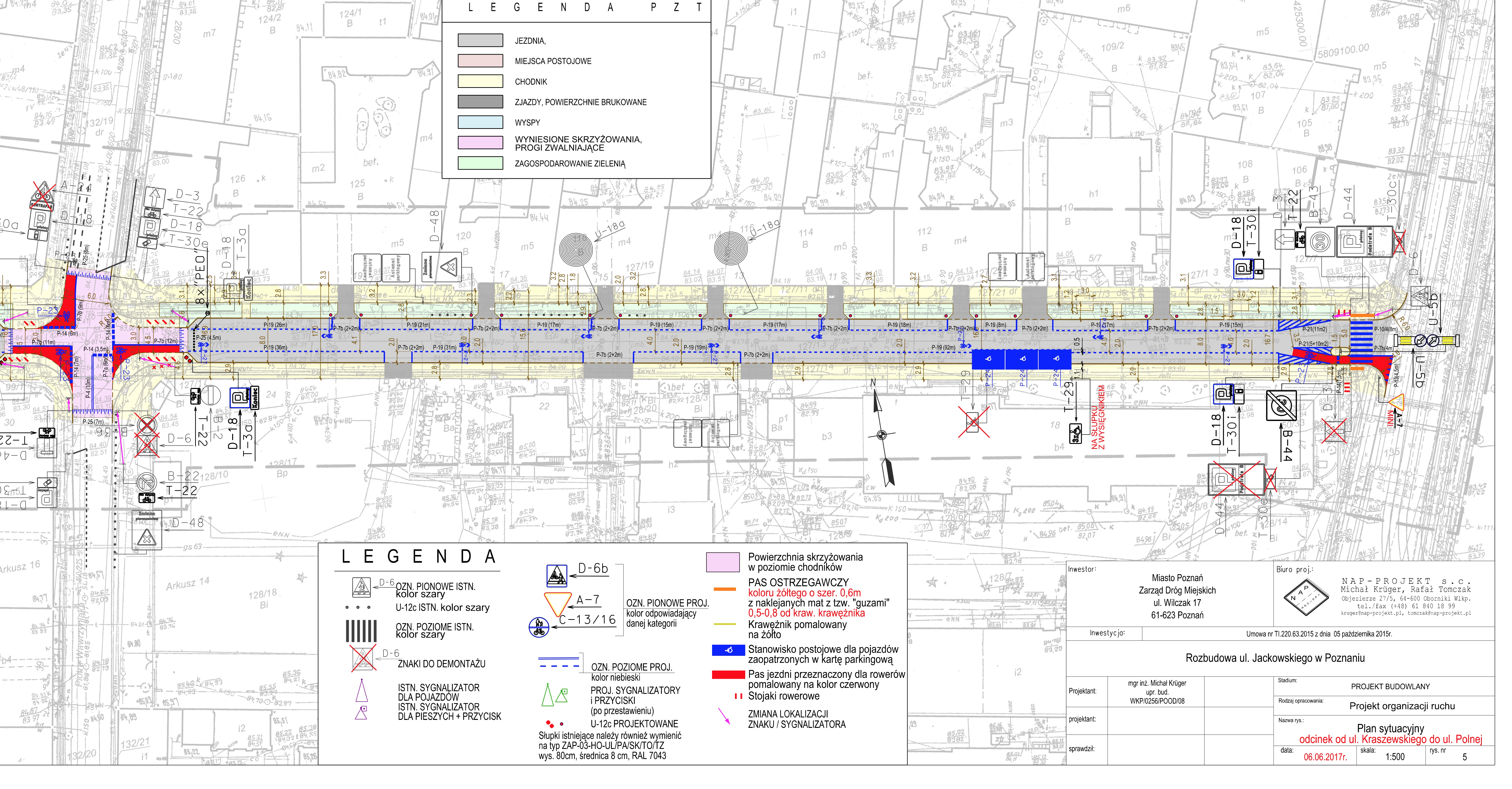 Planowana organizacja ruchu na ul. Jackowskiego, odcinek Wawrzyniaka-Kraszewskiego, źródło: projekt firmy NAP-PROJEKT przekazany przez ZDM