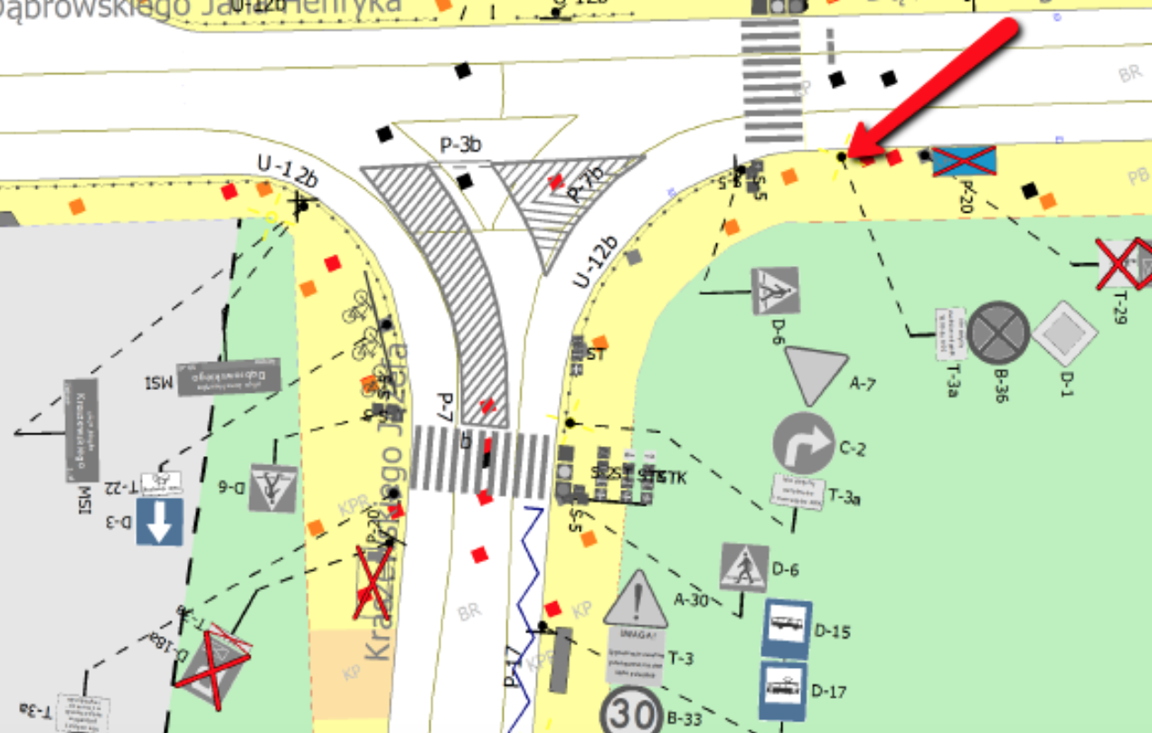 Postulujemy również włączenie w zakres opracowania skrzyżowań Prusa/Dąbrowskiego oraz Kraszewskiego/Dąbrowskiego i wzięcie pod uwagę poniższych rozwiązań:
